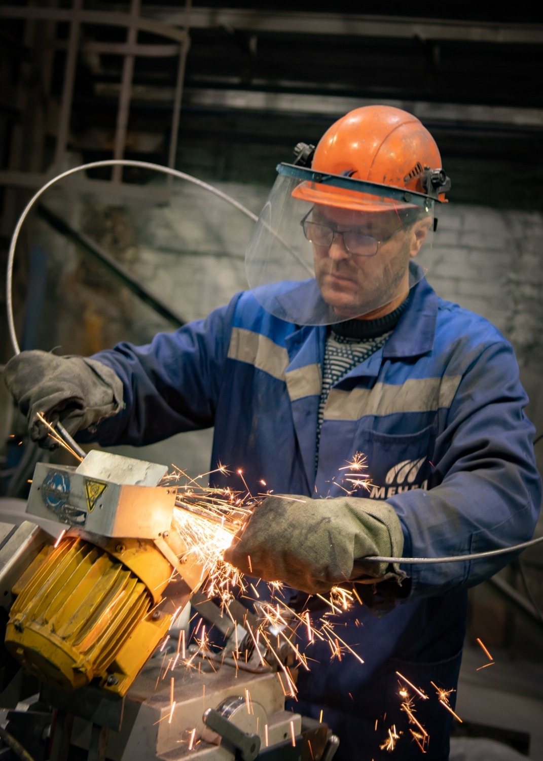 Пока мой официальный наставник Василий Кислов был занят производственным процессом, а у Алексея выдалось несколько свободных минут, я попросил его показать, как сваривают катанку. Василий Анатольевич в это время краем глаза наблюдал за мной, видимо, по-настоящему отвечал за новичка перед начальством. Но я вовсе не собирался сделать какую-нибудь глупость или залезть туда, куда не нужно. Алексей показал и рассказал о сути процесса. Как мне показалось (не знаю, правильно это будет звучать или нет), происходит всё в полуавтоматическом режиме. Два конца проволоки зажимаются в сварочном аппарате, нажимается кнопка, и проволока начинает плавиться, сливаясь воедино. Затем место сварки обтачивается на наждаке. И всё!