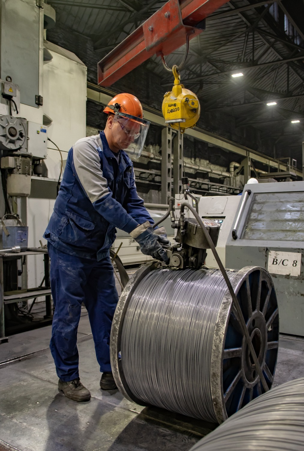 Машина (волочильный стан), на которой я должен был поработать, итальянского производства, работает меньше пяти лет (такие обычно действуют не одно десятилетие). В первом цехе их четыре, были приобретены комбинатом ещё до санкций. Машина современная, надёжная. Но и её необходимо ремонтировать и обслуживать. В первом цехе, как и в других подразделениях комбината, это делается регулярно.
