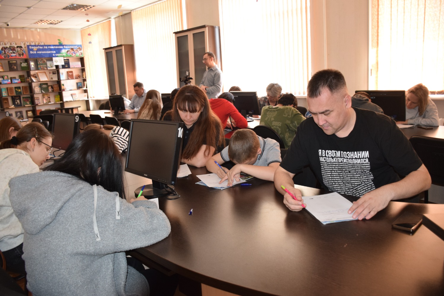 Текст диктовала учитель русского языка и литературы гимназии № 14 Татьяна Сорина. Писать пришли разные поколения белоречан – от школьников до людей почтенного возраста. В Год большой и дружной семьи приятно было видеть, что это мероприятие было отмечено родителями вместе с детьми.