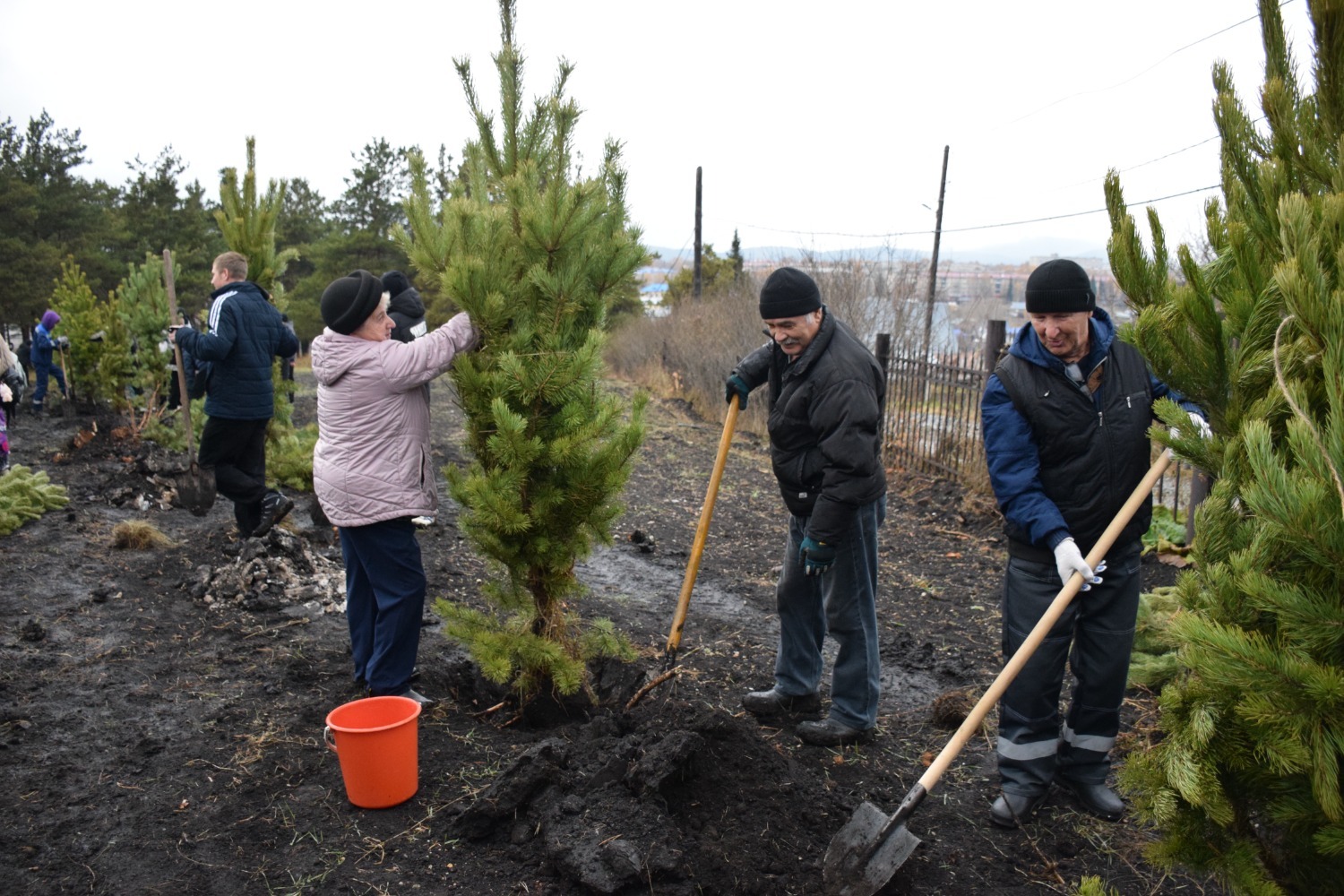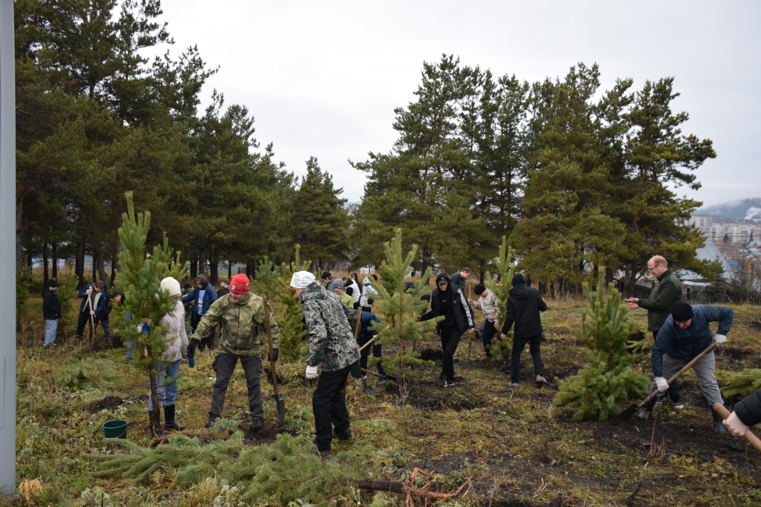 В рамках акции в Белорецке, в сквере имени Блюхера, высадили 90 саженцев сосен