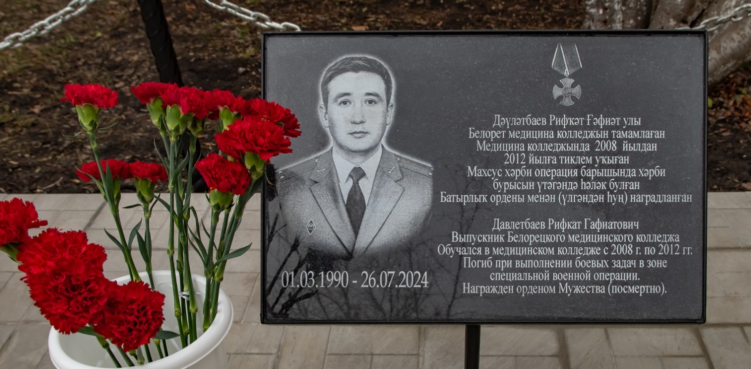 В Белорецком медицинском колледже открыли мемориал выпускникам,погибшим при выполнении боевых задач в зоне проведения специальной военной операции Фото Ильи Панченко