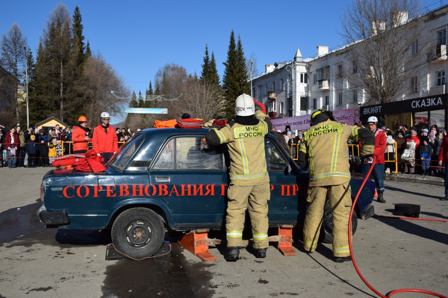 В Белорецке прошёл финальный этап республиканских соревнований на звание "Лучшая команда МЧС России по Республике Башкортостан по проведению аварийно-спасательных работ при ликвидации аварий на автомобильном транспорте". Семнадцать лучших муниципальных пожарных подразделений вышли на старт